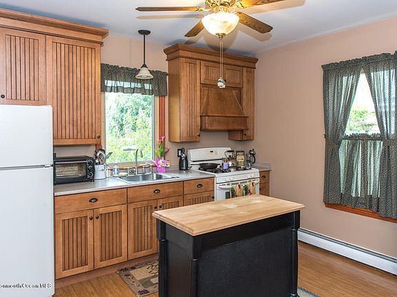 Come see this charming house in Historic Freehold Boro. This move in condition home features 3 bed 2 bath w/basement. Enter through the inviting front covered porch. The warm brown laminate flooring is featured on 1st fl.. Eat in kitchen boasts 42 in wood cabinets with crown molding and corian counters. Large Extension offers full bath, laundry room/office space along with a full pantry. This room leads to the park-like fenced in yard that is naturally landscaped. Enjoy your privacy on the covered back porch. Upstairs carpet has been upgraded and the spacious master offers a W-I-C. Attic space offers add'l storage and is completely floored. Newer windows & HWH, Entire home freshly painted. Blocks away from shopping and restaurants. Close to major roads ,transportation. Minutes from Mall