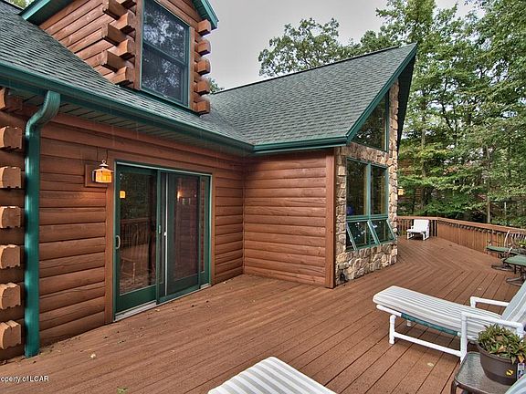 Stunning log home with a view of the ski slopes! Great room with vaulted ceiling and stone fireplace. Large kitchen with an island. Dining room with access to a large deck. Laundry/mud room off the 2 car attached garage. First floor master bedroom with attached bath. Two huge bedrooms upstairs with a loft that overlooks the great room. Enjoy all Eagle Rock Resort has to offer as a homeowner.