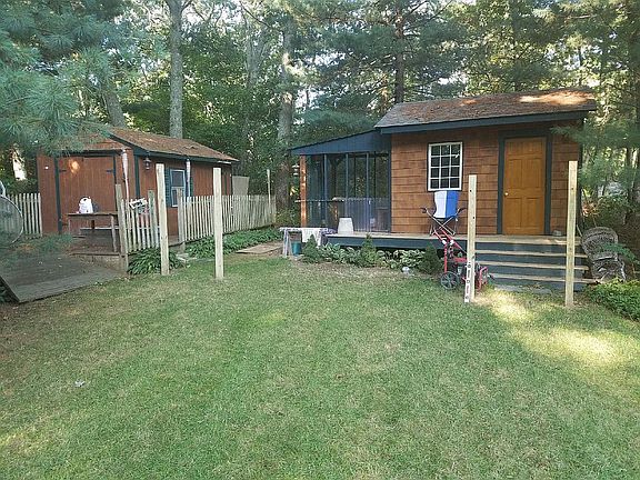 Cape Cod, waterfront, end of cul-de-sac, over an acre with wooded and lawn areas, 3 sheds, 30' woodshed/ carport, 2 stall garage, chicken coop, fenced in pet area (approx. 15'X15'), good neighbors, warm in winter and cool in summer, beautiful water front and much more.
