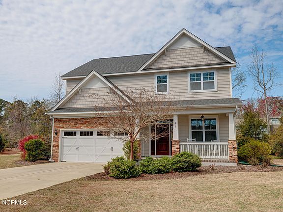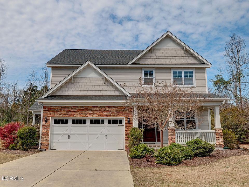 Immaculate home with over 2,200 sqft nestled on a cul-de-sac in the sought after Topsail school district. Beautiful curb appeal & a rocking chair front porch welcome you home and invite you inside where you'll notice it's been meticulously cared for & is filled with many upgrades throughout. The beautiful kitchen boasts stainless steel appliances including a built-in microwave, built-in oven, center island, granite counter tops, a pantry for extra kitchen storage, plus a ''butler pantry'' station that's great for hiding the coffee maker. Glass French doors open up to a formal dining room. The open living room has a feature wall with a gas fireplace flanked by built-ins. Upstairs are 3 bedrooms plus a loft, all with plush carpeting & a convenient laundry room nearby. The large primary bedroom has 2 walk-in closets and it's own full bathroom w/ 2 sinks, a corner soaking tub, tile walk-in shower, linen closet, tile floor, & frosted windows letting in natural light. Additional details found in the home include a speaker sound system, recessed lighting, window blinds, & upscale trim details including crown molding and board & batten. Unwind at the end of the day listening to the birds from the comfort of the screened porch that is complete with a ceiling fan & opens to a large patio. With mature landscaping there are many special plants that have been added such as a holly tree, Japanese Maple, live oak, red oak, bottle brush plants, & a stunning 'Rose of Sharon' that shows off the most gorgeous blooms. Attached 2 car garage with shelving provides additional storage.