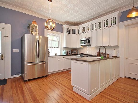 Recent $50,000 adjustment for a buyer that is not in a rush to close. Seller would like to remain in the home through April. Charming...Historical...a Masterpiece. You could write a book describing this one of a kind, Italianate Victorian home located in Monroe. The owner has done an exceptional job in updating this majestic home while keeping its history intact. The remodeled kitchen features new appliances and Kraft Maid cabinets, as well as an original built in cabinet, a copper mist quartz counter top and a tin ceiling. The formal dining room features a one of a kind, hand blown glass chandelier from Murano Italy. This freshly painted home, with original hardwood flooring features a conservatory, perfect for viewing the seasons in the park like grounds, a theater room, a third floor great room, a laundry room with new washer and dryer, _ bedrooms, with the master having a master bath which includes a double sink, a stall shower and a jacuzzi type tub. Another full bathroom features a claw foot tub and classic black and white tiles. The outside of the home is just as impressive as the quality on the inside ... There's a rocking chair front porch, a second floor patio, a private built in pool, pool house, l with a large patio and a detached garage. All this on _ acres, and close to Woodbury Commons, highways, local stores, the future Legoland, and the Heritage Trail.