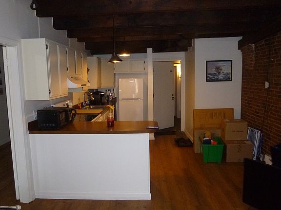 Charming one bedroom, one bath apartment on Market Street, in the heart of downtown Portsmouth. This beautiful row building in the Historic District has recently undergone renovation with more to come. Apartment is classic brick and beam with hardwood floors throughout. New bathroom porcelain & fixtures, stove, refrigerator, and electric heating system. $1900/ mo. for one tenant; $2000 for two. Owner pays for water & sewer; tenant pays other utilities. Third story walk-up. On-street parking only, but Hanover Street Garage is directly behind the building and free municipal lot is 5 blocks away. Sorry, no pets or smokers (firm). $2000 security deposit. Credit, references, & background check required. A great building with quiet, friendly tenants and a responsive building manager. Owner pays for water & sewer; tenant pays other utilities