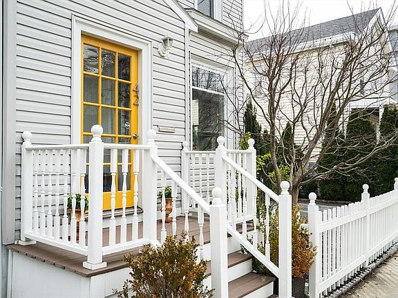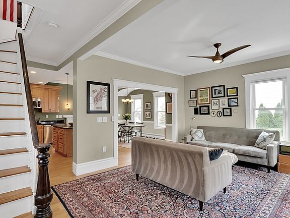 With the elusive elegance of a townhouse, this feels like a single family home. Front ent. exudes charm w/ picket fence, steps to small porch, & glass enclosed entry. 1st level living rm w/ hardwood floors, 9'+ ceilings, & bay wndw w/ stained glass detail. Open flr plan leads to dng and ktchn. Granite counter tops, s.steel appliances, & pantry, alongside marble mantel & tasteful curved millwork, a combination of contemporary & period character. Addtnl rm used as library, full bath, w&d, closet, & foyer w/bay wndw. 2nd level has 3 bdrms, 1 full bath & excl. deck. Main bed w/ walk-in closet w/built-ins, SW exposure. 2 excl. off-street parking. Excl. bsmnt w/ weather sealing & built-in strge. Energy effcnt mini-splits and seller-owned solar panels w/monthly credits, critter & snow guard. Mature plants w/ flowering bush & maple tree. 0.4 mi to Green Line T, 0.4 mi to SPL and SHS, 0.2 mi to Winter Hill Brwg (dist. per Google Maps). On the same street: park and celebrated Sarma restaurant.