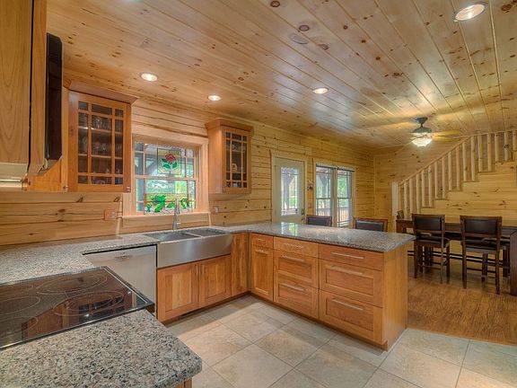 Beautiful three bedroom/3.5 bath home with garage and spacious rooms. Enjoy the mountain life with all the conveniences of the city. Nice size kitchen with a generous amount of cherry cabinets, stainless steel appliances, and granite counter tops. One bath has walk in tub. Special architectural designs to give the home more interest and light. Extras like towel warmer in bath. Laundry/Mud room. Loft area for more living space. Basement has game room/bar area/half bath and garage for more parking. Circular drive for easy access. Metal roof. Public utilities. Yard has been kept natural for easy maintenance. Located within walking distance to Lake Nottely.