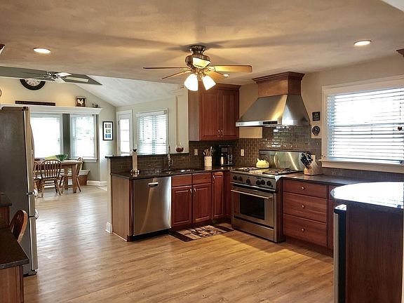 - Kit Dscrp: Main Level, Dining Area, Countertops - Stone/Granite/Solid, Cabinets - Upgraded, Deck - Exterior, Flooring - Stone/Ceramic Tile, Breakfast Bar / Nook, Stainless Steel Appliances, Wet Bar, Open Floor Plan, Recessed Lighting, Remodeled, Slider, Exterior Access, Wine Chiller, Gas Stove, Lighting - Overhead