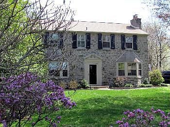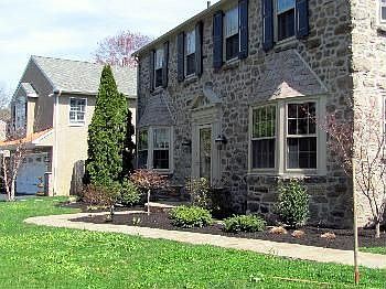 A charming blend of old & new awaits you in this classic 4 BR, 2½ BA PA Fieldstone Colonial located in popular "Broad Axe Village". Features include a beautiful newer custom flagstone front walkway, hardwood flrs throughout, Living Room with stone gas fireplace surrounded by custom built-in bookshelves and formal dining room with wainscoting and crown molding. Spectacular custom kitchen with granite counters & island, under cabinet lighting, smooth top range, two ovens,tumbled marble backsplash, wide plank Mahogany wood floors, recessed lighting & crown molding. Glass pane pocket door opens to Mud Rm w/custom built-ins & Powder Rm. Large Master BR has two closets & a bright bath with stall shower; 3 additional nice size bedrooms and a hall bath on this floor. Office/BR has balcony. Fabulous finished basement w/custom built-in storage benches, recessed lighting, crown molding and Laundry. Newer Driveway, awning covered rear patio & AMAZING fenced yard-great for entertaining completes this stunning home! Listed By Frani Morrione and Anthony J. Stipa, Jr of The Frani Morrione Group at Keller Williams Real Estate in Blue Bell, PA