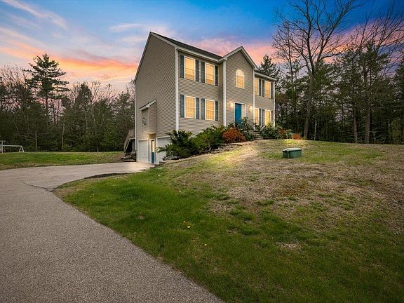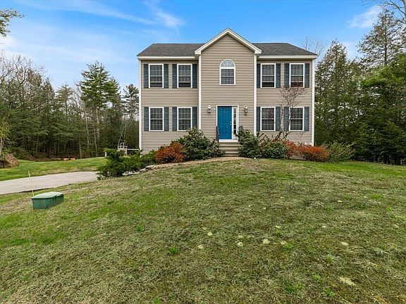 Beautiful colonial on 1.21 acres of land at the end of a cul-da-sac just minutes from Route 111. Enter into a open concept living room with gas fireplace, dining room, half bath with laundry. The kitchen has a slider that leads out to a sizable deck with great views of the scenic backyard. Second floor has an office, full bathroom and 3 bedrooms including the primary bedroom with walk-in closet and 3/4 bath. Spacious two car garage underneath with unfinished basement space for storage. Charming backyard space with trails that lead to the Rail Trail. First showing at the Open house Friday 5/10 5:00-6:30 & Saturday 5/11 11:00-12:30.