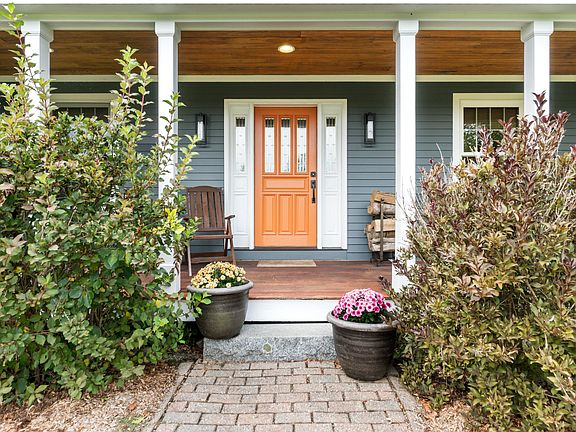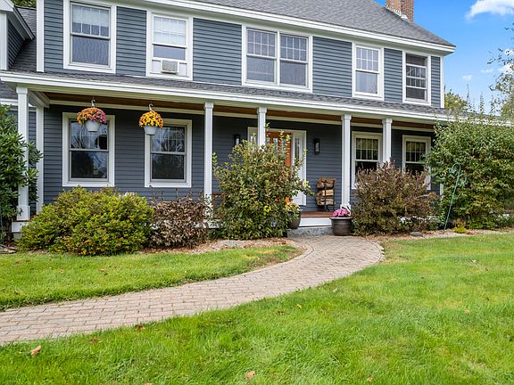 MAKE LASTING MEMORIES in this beautiful home, sited for PRIVACY on this one acre lot with lush landscaping and underground utilities. Relax on the wrap around porch or take advantage of the large lawn for corn hole or croquet. The welcoming foyer will greet your guests while the entrance from the 2 car garage is convenient for family members. The open layout of the first floor with oak floors offers a kitchen with deluxe appliances, corian counters, a pantry and a generous island. Enjoy the sunny breakfast area for getting homework done or for sipping your morning coffee. A woodstove in the fireplace of the comfy living room will invite cozy gatherings ~ big and small. This level is complete with a powder room. Upstairs, four bedrooms and 2 full baths, both with double sinks, allow room for everyone. The primary tiled ensuite bath contains both a shower and a separate deep jetted tub. Head to the spacious game room with propane stove to watch sporting events or movie night! While the basement is unfinished, it's dry, insulated and being used as a music room AND a workout area. While located in a quiet, private neighborhood, this location provides quick access to I-95 for commuters, or evenings out in Portsmouth, NH. There is a lot of house here for the price!