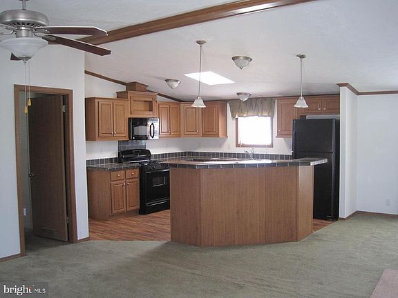 Like New Model Home has never been lived in & is waiting for you! Featuring: move-in ready spacious open floor plan with 4 BR, 2 BA, really nice kitchen with Island & skylight, big living & family rooms, private master bedroom & bath with garden tub, shower, double vanity with 2 sinks, & built in cabinets, additional 3 BR & full bath on the other side of home, laundry & utility room is off the kitchen, 2 new decks with vinyl rails, propane gas heat & cooking, new central air. Located in a nice country setting with affordable lot rent & utilities. This is a great buy, don't miss it!