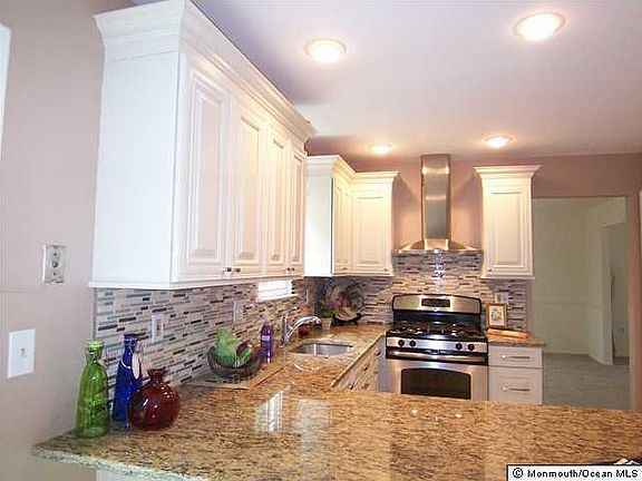 An educated buyer will recognize location and price as the winning combination here! This neutral, light and bright Shadow Brook 4 bedroom colonial offers brand new kitchen cabinets, backsplash and granite counter,gorgeous leaded glass door in the spacious foyer. Updated master bath. House has been recently painted. Backs up to green acres, with a 50' buffer. Actual zip 07701