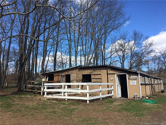 Open flat 6.53 acres, back lot in desirable Middlefield. 3 bedroom home overlooks Horse property through large picturesqe windows. Barn has 10 stalls, 1 pony stall, tack room and lighted sand outdoor. A handymans special! Ready for you and your animals to make it your own and call home! Being sold as is.