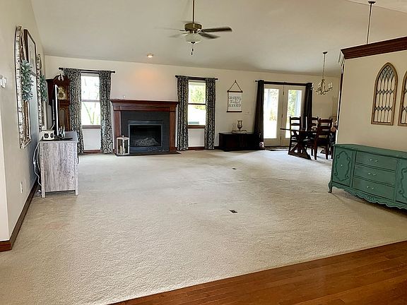 GREAT SETTING in Harrison Trace! Main floor owner bedroom and laundry. Large kitchen with cherry wood cabinets, large island, pantry, double ovens, gas range. Beautiful woodwork. Open floor plan. 3 bedrooms plus office/den. Vaulted ceiling in the great room. Full basement. Serene covered back patio! 3 car garage with concrete driveway. Evergreens on both sides for added privacy. New vanity and LVT flooring in both baths. Fresh paint throughout. Exterior trim and shed has been painted. New a/c in 2020. New gas water heater in 2021. Whether you're looking to downsize or need more space, this is the place! You can't build for this!