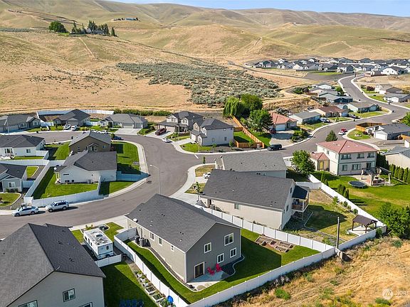 Better than new, stunning 2019 Titan Homes built daylight basement home in Prosser’s new Sophie Rae Estates. The home features charming picturesque farmland views in Prosser’s wine country from main living areas with 4 bedrooms including a luxurious primary suite on the main floor with walk-in kitchen, gourmet island with quartz countertops, spacious pantry, laundry room with lockers, and an open dining and great room with vaulted ceilings. The daylight basement features a large family room, 3rd full bathroom, 4th bedroom and an additional hobby or storage room. The large fenced yard has a garden space, oversized patio and sprinklers on timers. Located in a cul-de-sac for increased privacy.