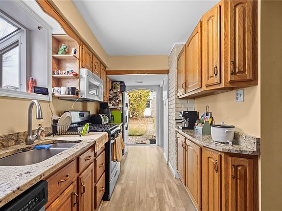 You'll love this spacious home in the heart of West View featuring 2 spacious bedrooms & 2 full baths. Enjoy the roomy LR with a big bay window that lets the sunlight pour in. Great area in front of the window for an office space while still having a large living area where you can enjoy the wood fireplace on a cold day. You'll immediately notice the open floor plan where the LR leads into the DR & sunroom w/huge floor to ceiling windows. The beautiful kitchen offers granite countertops, lots of cabinetry, beautiful garden window & stainless steel appliances & leads into the DR making it a great space for gatherings. The DR is highlighted by a chair rail, crown molding w/accent pieces, decorative ceiling & a ceiling fan. The basement offers: laundry area, full bath, tons of storage & usable space. Improvements include AC(2018) furnace(2019) H2O tank(2024). No need to fight for parking on the street as you have your own 2 car garage in the back. Minutes from the business area *MUST SEE*