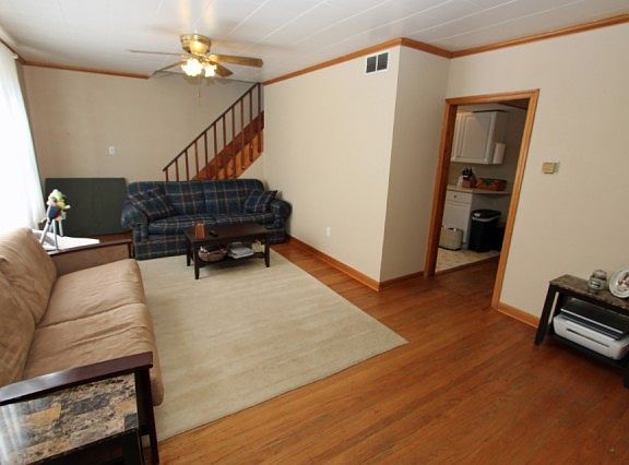 3 Bedroom/ 1.5 Bath home conveniently located to major Highways and Public Transportation. Picture Window allows for Lots of Natural Light in the Living Room with Hardwood Flooring, Wood Trim and Ceiling Fan. Dining Room enhanced with chair rail & wainscoting. Updated Kitchen includes: Tile Floor, Stainless Appliances, Recessed Lights, Glass Door Pantry, & Ceiling Fan. Main Floor has 2 Bedrooms with Hardwood Floors & Ceiling Fans. Updated Full Bath has a Jacuzzi Jetted tub with Full Surround. Upper level currently includes 3rd Bedroom & Powder Room. Additional Room on Upper level offers many possibilities for its new owners with minor conversion: perhaps a 4th Bedroom or an Upper Level Master Bedroom retreat. Fenced Rear Yard with Storage Shed. This home is a must see.