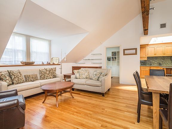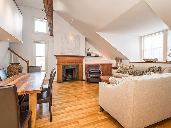This tastefully furnished two bedroom plus office is located in a historic brownstone with an elevator. The spacious gourmet kitchen is flooded with sunlight and has a breakfast bar. A bonus office and sleeping nook are lofted above the living and dining space, leading out onto an exquisite private roof deck with panoramic views of Cambridge, Boston, and the Charles River. Additional features include two fireplaces, two full bathrooms, two exposures in the large master bedroom, custom cabinets and built-ins throughout, and hardwood floors. This home has in-unit laundry and central AC.