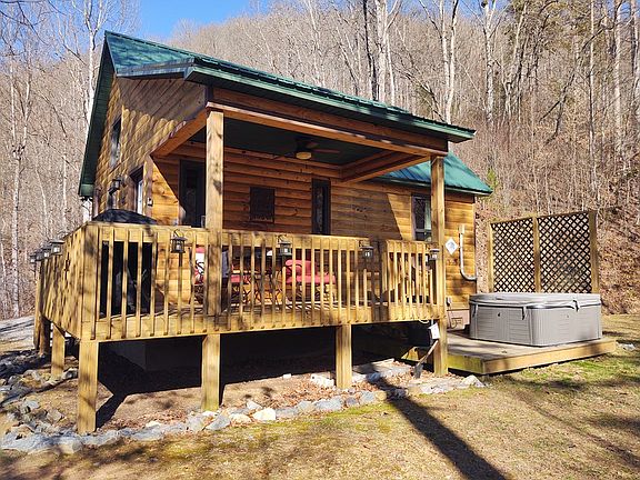 Welcome to this charming mountain cabin where you will experience the perfect blend of coziness and functionality. Step inside to discover a thoughtfully designed space featuring one bedroom, bathroom, living-room, kitchen, and laundry area. The beautiful kitchen is equipped with granite countertop, full size refrigerator, electric range, and even a dishwasher. Step outside on your covered front porch and enjoy your morning coffee or evening sunsets or just sit an enjoy the beautiful mountain views. After a day hiking mountain trails, rafting on the Nantahala River, skiing on Lake Fontana, snow skiing at nearby slopes or a drive to the Cherokee Casino come home enjoy relaxing in your on jacuzzi. Whether you are looking for weekend retreat in the mountains of WNC or a permanent home this is one to take a look at. Comes furnished and ready to move in.