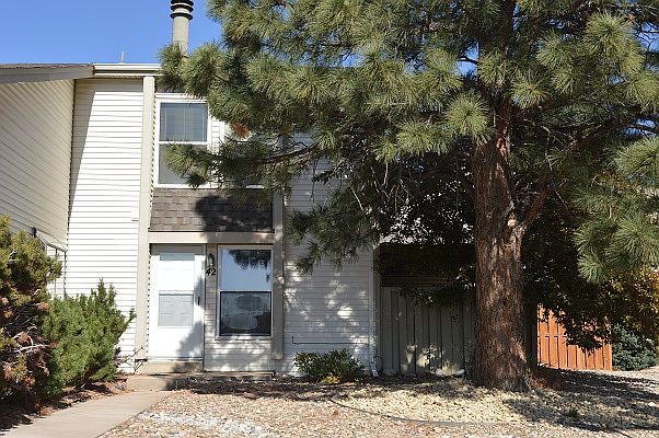 Incredible and Rare 2 story condo with finished basement and private covered deck with amazing views. Easily accessible location near schools shopping, restaurants and I-25. Gorgeous remodeled bath with large walk in shower plus newer windows, carpet, counter tops. Finished basement with 3/4 bath and Family / exercise room could be third bedroom. Built-in bookshelves and stone woodburning fireplace in living room. One car garage attached and also one reserved parking spot. Clean and well maintained!."Kick back" on your private covered patio and appreciate the close-up view of Castle Rock and Pikes Peak.