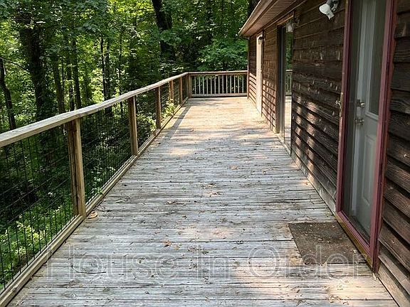 Wooded Neighborhood Setting - South Asheville house on a half acre wooded lot. The deck along the length of the home offers a nice wooded view and is accessible from the living room and primary bedroom. An open plan living and dining room also open to the rear deck and parking area. A spacious kitchen includes a skylight, plenty of cabinet and counter space, and appliances including the refrigerator, dishwasher, electric range, and built-in microwave. The mudroom and laundry room with washer and dryer hookups are located off of the kitchen. The primary bedroom includes an en suite bathroom and the remaining two bedrooms each have a ceiling fan and share the hall bathroom. Both bathrooms include a shower/bathtub. Basement-level drive with one-car garage plus a main-level parking area. Central heat and air conditioning. Tenant responsible for all utilities and landscaping maintenance and lawn care. Amenities: no cats allowed