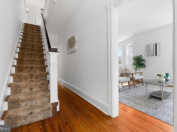 Location, location, location! Enjoy the convenience of in-town living with this charming half house located a stone’s throw from Nassau Street. The deep front porch beckons you to come a sit a while and relax while watching your neighbors pass by. As you enter the home, note the original newel post at the base of the stairs, this is one of the original features in the home. The hallway, provides front to rear access on the first floor, also provides some privacy for the living spaces. The open living and dining rooms are bright and sunny. The dining room has a classic bay window extending the space. Note the high ceilings. At the rear of the house is the eat in kitchen. The built-in hutch is an original feature of the space and provides ample storage. The kitchen opens up to back steps and the charming back yard and patio. The second floor is home to three bedrooms, each a good size, hall bath and a second-floor laundry. There is even a third floor! Here there are two rooms, both with original diamond pattern window panes, great spaces for offices or what ever you desire. Part of this floor is unfinished and provides along with the basement storage space. Close to restaurants, down town and the University, this is an amazing opportunity to live in the heart of downtown Princeton!