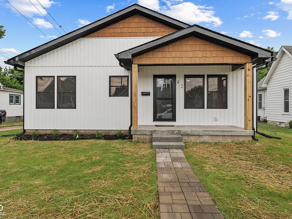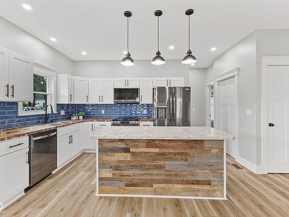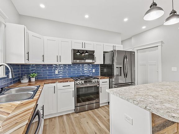 This brand-new home, crafted by Flipside Homes, offers an expansive open floor plan and numerous amenities. The kitchen boasts white shaker cabinets complemented by butcher block countertops and a tiled backsplash, featuring a spacious center island with seating and stainless steel appliances. The primary suite includes a walk-in tile shower, a double bowl freestanding vanity, and a generous walk-in closet. Additionally, there's a sizable laundry room ample storage. The finished 2-car garage provides separate entrances and plenty of additional storage space. Outside, the large backyard is perfect for outdoor activities. The home enjoys a prime location near downtown Columbus, surrounded by public walking trails and numerous amenities.