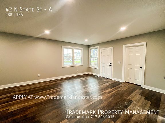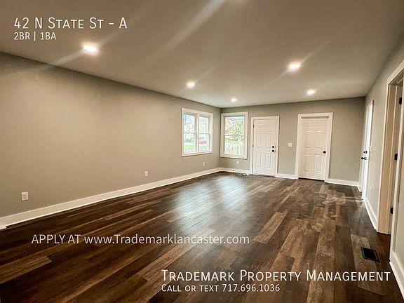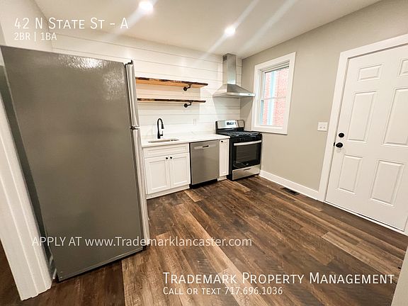 42 N State St Unit A 2 Bed 1 Bath Condo Quality 1st Floor Apartment This beautiful apartment has been completely updated from floor to ceiling. It is conveniently located in the town of Ephrata and which makes the cafes and restaurants very walkable. This apartment has a large living room, a large bathroom, 2 spacious bedrooms and a beautiful kitchen with all new appliances. There is also a washer/dryer hook up in the unit for the tenants convenience. There is a nice rear patio as well as a nice small front porch. $50/adult to apply. Available immediately. Go to www trademarklancaster com to set up showings and to apply