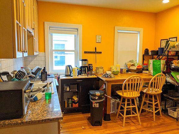 Big space on the top two floors of a multi unit house. This is STEAL with 3 parking spaces included! The main level has a living room, dining room, renovated eat-in kitchen, renovated full bath, bedroom and bonus study + front and back enclosed porches. Upstairs are two more bedrooms and the second full bath. The kitchen is beautiful with granite counters and stainless steel appliances. Hardwood floors run throughout the unit. Modern gas heating system! There is storage available and dedicated free-use laundry machines in the basement. Cat negotiable. Shared yard. Super close to the Ball Square Green Line! Available June 1. One month broker fee. Tenant pays gas & electricity. One month broker fee.