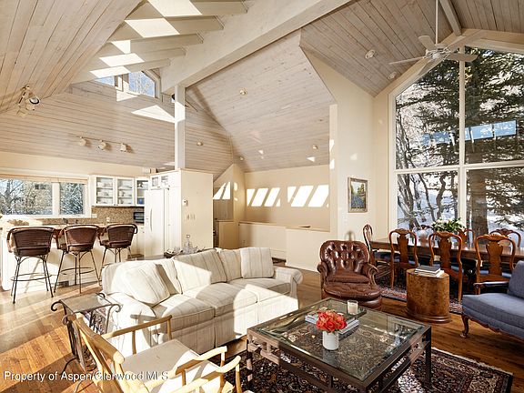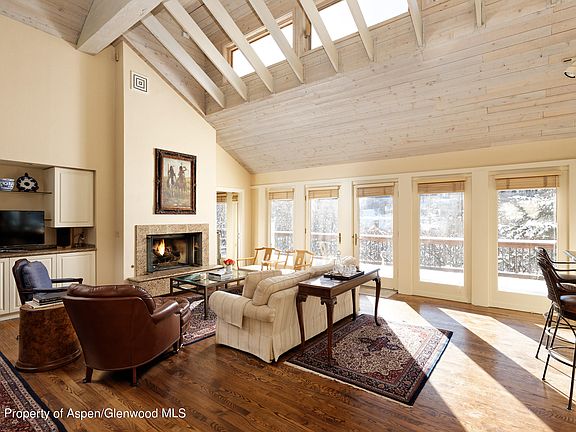 Perched on the Ridge of Red Mountain with views of all the ski areas, this 3 bedroom home is just a short drive to Aspen Mountain and all the amenities of downtown. The main level master bedroom which includes a sleeping loft, the kitchen and living room with it's cozy fireplace, boast views from wall to wall windows and walk out to the sunny wrap around deck. The guest master bedroom and 3rd bedroom share the walk out garden level along with a cozy den where you can curl up and watch a good movie. Marvel at the surrounding scenery or star gaze as you relax in the hot tub after a perfect day of skiing!