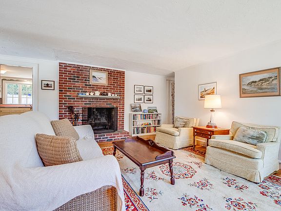Chatham! LOCATION! If quintessential Cape Cod's salt air, sandy beaches and gentle winds are something you dream of look no further than this home at 42 Norcross Circle, South Chatham. Walk to 3 sandy beaches! Hear the distant sounds of the surf from this spacious 3 bedroom ranch style home in a highly coveted area of South Chatham. Lovingly maintained and cared for this year round ranch features beautiful hard wood oak flooring throughout. Wood burning center chimney fireplace, 3 bedrooms, 1 1/2 bathrooms, outdoor hot and cold shower, a one car attached garage, full basement, and large eat in kitchen. This is possibly the finest property to come to market in Chatham, walk to beach, and under $999K. First time offered in 40 years. Slate floor in darling breezeway is lovely accessing both the front and back yards adds add'l 136 sf. Thermal pane windows by Pella, a new septic system were installed 12/2013. A new roof was installed 04/2021 and the chimney has been rebuilt. Kitchen and baths are vintage and chic by some measures. Land is sited on a darling knoll with mature shrubs. A private back yard awaits including slate floor porch. LOW taxes! NOT in a flood zone! Rental income EZ