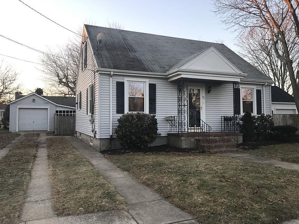 Well kept cape with character and charm! Cozy house with detached garage and fenced in private yard. Off garage is a nice covered patio. Hot tub in yard is to stay. Inside home has hardwood & tile floors. 1 & 1/2 baths with a possible 3rd bedroom on first floor. Newer kitchen and recently painted interior. Newer roof on garage. Must see.