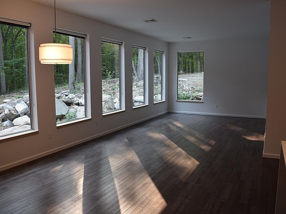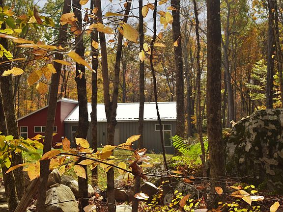 This very unique Hudson Valley home has a striking modern style, but perhaps even more exceptional is the feeling of peace and being a part of the forest. The huge, south facing windows let in the dappled green light in summer and bright, airy sunlight in winter. The moss-covered rocks and fallen trees on the forest floor are bright green all year round. We have spent our careers working in residential renovation in Manhattan and put that experience to work designing and building this home. The house is a quarter mile deep into the woods and feel miles from anything, but yet is only ~15 minutes from Beacon, from 87/84 in Newburgh, and from New Paltz. It feels like an urban loft in the middle of the forest! (There are three similar rental houses on the same property, but they are well-spaced and private) The eye-catching exterior has both red corrugated steel and vintage-finished gray metal reveal panel sidings; galvanized roof; and polished steel doors. Inside is bright and spacious with 10 foot ceilings throughout and a bank of six 7'x4' windows in the LR-DR-kitchen area. The large kitchen, built by our own high-end custom shop, is U-shaped with a deep bar overhang on the peninsula, perfect for entertaining and cooking together. 2 bedrooms and a home office large enough to be another bedroom, two full baths, and laundry room. Central Air. Fios fiber optic internet. Outside is a patio and landscaping with huge boulders, bamboo, moss, and ferns, and access to our quiet fifty acres of woods, wetlands, creek, and trails. Available February 15, 2022. We would like a lease that ends June, July, or August of 2023. Tenant pays for all utilities. Heat, hot water, and cooking are LP gas. Excellent well water. Tenants split cost of snow removal with two other properties. Tenant is responsible for mowing lawn. Pets are allowed with additional security deposit; dogs must be leashed. No smoking inside.