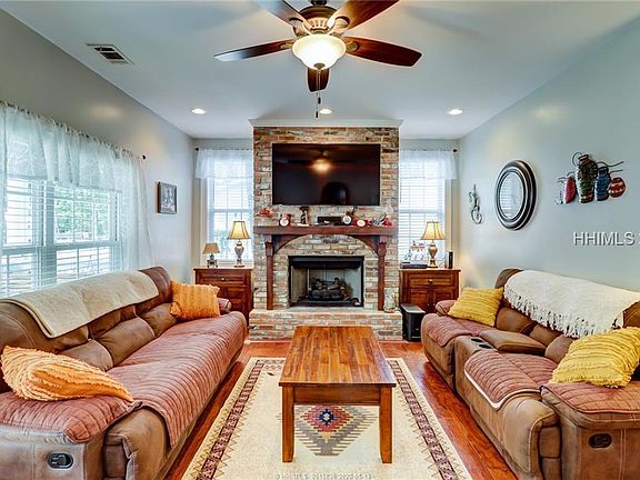 This picturesque Lowcountry cottage is the perfect family home. Located in the desirable Bluffton Meadowbrook neighborhood, this home features 3 bedrooms and 2 ½ baths, upstairs bonus room, brick fireplace & hardwood floors throughout. Large kitchen with granite counters, stainless steel appliances & plenty of cabinet space. Screened porch opens to expansive back yard, ideal for entertaining, family fun and pets. Large enough to add pool! Spacious front porch with swing provides the perfect space to wind down at the end of a day. Small, quiet neighborhood with low POA fees.