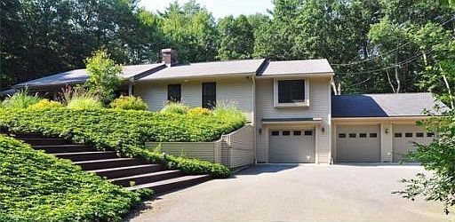 HATFIELD Meticiously maintained; this custom ranch was built in 1978 with select finishes and upgrades through 2010. The beautiful private, wooded 4 acre setting, with in-ground pool, creates a stress-free life style. Updated kitchen, with skylights is open to family room w/built-in book shelves . Living room with fireplace & 9ft. ceilings. Dining room with oak floors & sliders to the back yard and pool area, making it perfect for entertaining. Spacious master bedroom with full bath and dressing room can also be accessed from second bedroom. Additional full bath and third bedroom. Numerous updates in 2010 include countertops, flooring, baths, two car garage and windows. New pool house, pool liner, fencing and whole house generator. In 2015 a 1,300 sq ft wing was added with new ramped, front entrance, pantry, laundry, full handicapped bath with walk in shower, den with sun/plant room, and large studio that could serve as a 4th bedroom. In addition there is approximately 1,900 sq. ft. finished basement. House is less than five minutes to the Northampton line and quick access to Routes 5&10 and I-91.