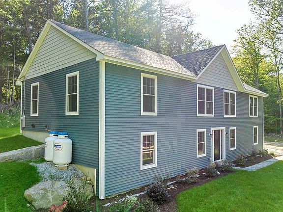 42 Old Tilton Rd, Canterbury. Located in close proximity to the elementary school, library and just minutes to 93 & the new exit 17 shopping center, this beautiful and large home is ready to go! The lower level offers a large mudroom as well as a family room, with another finished room that could be used for an office, craft room or anything else you can imagine. Head upstairs and you'll be greeted by a a large open concept area with neutral LVP flooring, and a large kitchen featuring soft-close cabinetry, pantry cabinet with pull-out drawers, and leathered granite counters with peninsula seating for 3. Flow from the kitchen into the dining/living room and over to the primary suite- featuring dual closets, transom windows and an ensuite bath with walk-in shower and double quartz vanity. On the other side of the home are the second and third bedrooms, complete with large double-door closets and a shared bath featuring quartz countered vanity with ample storage. For the handy person or hobbyist, this home also features a detached 2 stall garage with separate electric and workshop under, as well as a large two stall garage in the walkout basement. The lot is adorned with natural granite walls(actually sourced from the lot) and patio area off the back sliders. This home is truly a unique home in a sea of cookie-cutter new builds-with a perfect layout for entertaining. Could it be yours?