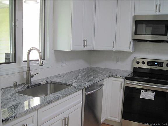 END UNITE, COMPLETELY RENOVATED AND READY TO MOVE IN. GRANITE COUNTER TOPS, TILE BACKS PLASH, SS APPLIANCES, AND GLEAMING WHITE CABINETS ALL THE WAY TO THE CEILING. ALL THREE BATHS (GRANITE AND TILE HERE TOO), FLOORS, WINDOWS, PAINT, LIGHTING, SUN PORCH..... EVERYTHING IS NEW.. ADD TO THAT A LARGE FINISHED ROOM IN THE BASEMENT, GARAGE, AND ON A CUL DE SAC - LIKE NEW CONSTRUCTION - MAIN LEVEL FLOORING IS ALL NEW HARDWOOD. ROOMS ARE LARGE AND VERY BRIGHT WITH PLENTY OF WINDOWS AND FLAT CEILINGS. THIS END UNIT COULD HAVE A ZERO CLEARANCE FIRE PLACE TOO. THE SUN ROOM AND FINISHED ROOM IN THE BASEMENT PROVIDES AN ADDITIONAL 350+ SQ FEET OF LIVING SPACE MAKING A TOTAL OF 1700 SQ.FT. THE COMPLEX IS CONVENIENTLY LOCATED IN ENFIELD RIGHT OFF RT. 190. MATURE PLANTINGS PROVIDE A PICTURESQUE SETTING.