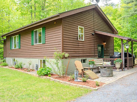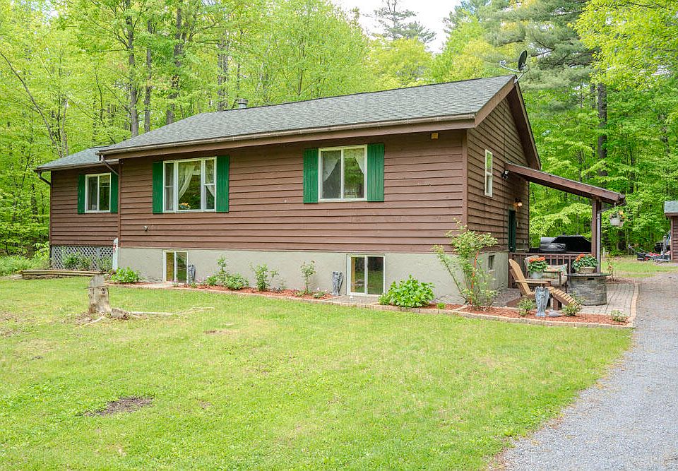 Tucked away in Ausable Acres, this charming 2-bedroom, 1-bathroom home sits on 1 acre of land and borders about 40 acres of state land. There are tongue-and-groove walls throughout, and a wood stove featuring a beautiful floor-to-ceiling stone hearth, giving the home that cozy cabin feel. The newly updated flooring and freshly renovated bathroom add a fresh touch while preserving the home's Adirondack character. Outside, enjoy your own private sanctuary with a spacious back deck—ideal for relaxing, entertaining, or simply enjoying the surrounding nature. A shed on the property offers additional storage or workspace. Whether you're looking for a weekend getaway or a year-round home, this private and peaceful property is a rare find. Come experience the cozy comfort for yourself!