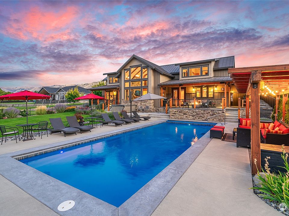 Welcome to 42 Orchard Place at Twin W! Exquisite & top-quality custom-built home, guest home, & matching shop on an acre+ of beautifully landscaped property & 100' of low bank Columbia River WF! 6000sq' of overall living space, 4000sq'+ of garage space w/ 9 bays, in ground saltwater pool w/ auto cover, & shared dock w/ boat lift! High end features & finishes throughout including zoned heated floor system, Montana stone fireplace, high quality cabinetry, & commercial grade lighting systems. Enjoy tons of outdoor living space on one of the covered decks w/ infrared heaters or sit patio poolside! Home is private, quiet, & extremely energy efficient w/ upgraded batt/foam insulation + solar panels. Amazing vaca home w/ space for all your guests!