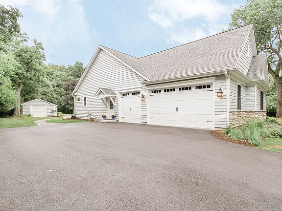 Just like new! Stunning Waterfront Ranch in Barrington Hills on prestigious Otis Road! Custom-Built, 4 bedroom Home nestled on Private, 5-acre lot surrounded by mature trees! Handscraped hardwood floors, vaulted ceilings, and solar lights throughout! Chef's Gourmet Kitchen with top of the line stainless steel appliances, enormous island with breakfast bar, walk-in pantry and opens to the vaulted breakfast room with serene views. You will love the airy 3-season room, patio, and in-ground heated pool. Incredible location ~ Close to village amenities yet miles from the ordinary! Garage space for 6 vehicles; waterfront with your own dock; LP Smartside maintenance-free siding; professional landscaping and brick paver patio surrounding the pool in your own backyard oasis! Deep pour basement plumbed for bath and additional entry from garage. Horses allowed! Nothing to Do but Move In!