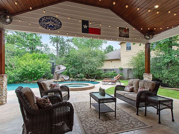 Spectacular family home with an abundance of upgrades located on an over-sized private green belt lot in the desired Village of Indian Springs. This 5 bedroom home features 3 full baths and one half bath, two-story entry with curved stairs and a formal study. Spacious Master Suite with updated bath room and free standing jetted tub. Open kitchen to family room with granite counter tops. The upper level offers a large game room and separate media room with projector and screen. One of the upstairs rooms has hidden access behind the bookcase (currently used as a workout room or can be used as a 5th bedroom) and there is also a bonus space (currently a Lady Cave) that is not in the sqft. Spacious back yard offers pool and spa, sport court, large covered outdoor living space and fire-pit. Other notable features include: all bathrooms have been remodeled, new interior paint throughout home (2020), new upgraded carpet (2019), new roof (2016) and a true full 3 car garage.