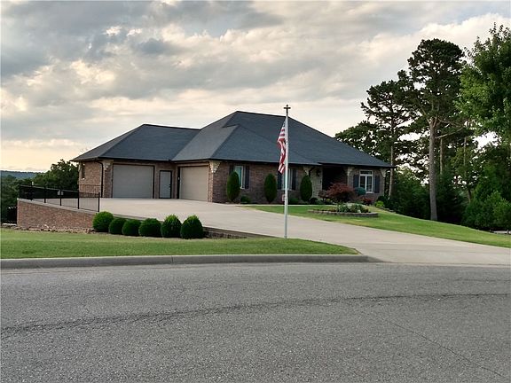 Fabulous executive home located in the Bluffs area of Holiday Island. This custom built brick & stone home features 4 bd, 3 ba, 2 liv, office, workout room, 3 car garage, separate workshop in basement and tons of extra storage. It also has a heated "enclosed porch" room on the back for enjoying coffee and the great views. There's also a great covered deck on the main level and a huge concrete patio with built in wood burning fireplace on the back to enjoy those cooler nights watching the stars. All this only a few minutes away from 27 holes of golf, tennis courts, Pickle ball courts, Olympic size community pool as well and a children's pool, baseball diamond, Party Barn and beautiful Table Rock Lake to enjoy. The property is located approximately 1 hr. 15 mins from NW Arkansas XNA Regional airport and 1 hr from Branson International Airport and just 10 mins from Historic Eureka Springs and all it has to offer. Schedule a showing today before it's gone.