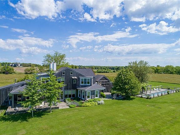 Stunning private compound with breathtaking panoramic ocean views over 90 acres of Little Compton farmland. Designed by renowned architect, Michele Foster, and built by Kirby Perkins, this light-filled contemporary home was designed to take in the beautiful pastoral vistas and ocean views from every room in the home. First floor features include a large center-island cooks kitchen with stone counters and maple cabinetry, Wolf stove, double ovens, and Sub-Zero Fridge, as well as a sunny breakfast area, dining area, fireplaced living room, and family room - all with views through the huge picture windows. The first floor also offers a large walk-in pantry, a full bath and half bath, and features gleaming birch hardwood floors throughout. The second level offers the primary ensuite bedroom with walk-in closet and the second and third bedrooms, each with outdoor decks. The sweet one-bedroom guesthouse features an airy screened patio, wonderful for warm summer nights, and comes complete with a luxurious sauna and outdoor shower. Set on over 4 pristine acres, the grounds offer an oversized lap pool and spa while three blue stone patios surrounding the house provide many options to take in the spectacular views. Close to Farm Stands and the center of town and 15 minutes to Little Compton's beautiful beaches, 42 Patten Drive is an idyllic Farm Coast retreat. Make sure to check out the Virtual Tour! Buyer pays Little Compton Agricultural Conservancy Tax at closing.
