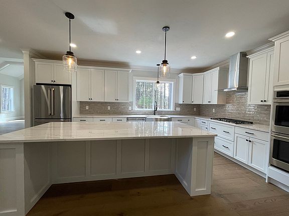 This well planned NEW CONSTRUCTION completes the prestigious GROTON WOODS DEVELOPMENT. Home is located on a cult de sac & is privately set back on 1.5 acres. This grand colonial boosts a huge 3 car attached garage & has a beautiful farmers porch that receives the afternoon sunshine. Kitchen is impressive & bright with white cabinetry, quartz countertops, stainless steel appliances & walk in pantry that includes countertops, shelving & beverage fridge. Family rm is flooded with sunlight, has a vaulted ceiling with beams & gas fireplace. First floor also boasts a study & dining room. Entire first floor is wide plank hardwood. Primary bdrm has hardwood flooring, 2 separate huge walk in closets, large master bath with lovely tiled shower & separate soaking tub. Basement has many windows, glass slider & ceilings are 9' high making this a great potential for future expansion. Neighborhood has beautiful landscaping & many walking trails. Ideal commuter location just 3 miles from 495!