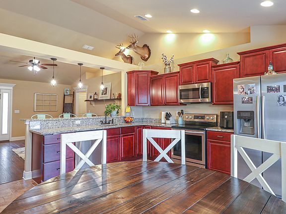 - Interior Features: Window Treatments, Attic Storage, Ceiling Fan, High Ceilings, Natural Stone Counter Tops, Walk-in Closets, Cathedral Ceiling