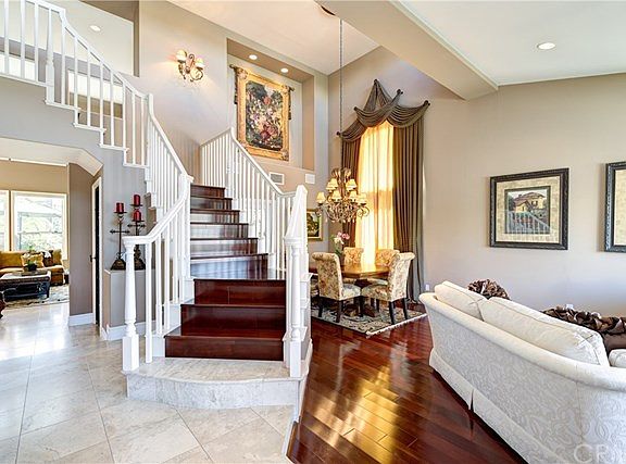 Incredible value for this absolutely gorgeous executive home, located within the private gate-guarded Bear Brand Ocean Ranch Community. Featuring a dramatic entry with vaulted ceilings and sweeping staircase, this highly upgraded home includes beautiful hardwood and travertine flooring, custom paint, upgraded baseboards, window casings, plantation shutters, custom wine cellar and designer touches throughout. Warm and inviting family room features custom built-in media cabinet, surround sound, and fireplace. Light & bright kitchen has breakfast nook, white cabinetry, granite countertops, built-in refrigerator, double ovens, new microwave with convection feature, new dishwasher, wine refrigerator, & custom leaded glass door to formal dining & living room. Luxurious main floor master suite with fireplace and master bath with dual sinks, vanity, separate tub & shower and generous walk-in closet. Three additional generous bedrooms & two additional full bathrooms on second level. A tropical ambiance accentuates the private backyard with bubbling spa with waterfall feature, adjacent fire pit, built-in barbecue, dining patio, separate lounging area and lush landscaping with palm trees, outdoor lighting & flagstone hardscape. Fantastic location, close to shopping, Salt Creek Beach, Dana Point Harbor, and the exceptional Ritz Carlton & Monarch Beach Resorts. Ocean Ranch offers 24-hour guard-gated security, association pool/spa, playground, sport court and fun neighborhood events.