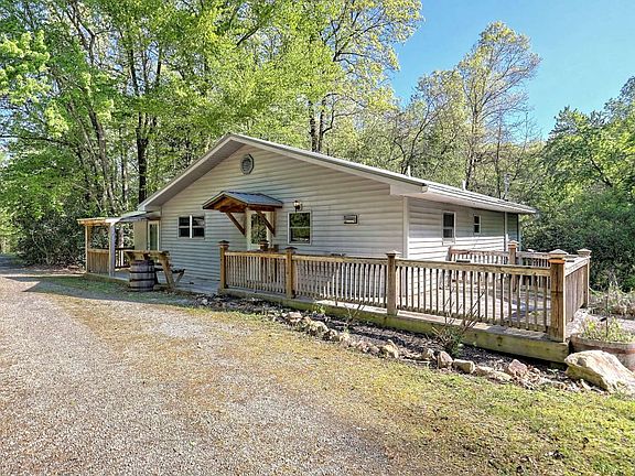 Traditional brick ranch with mountain views on 6.03 acres of unrestricted land just around the corner from Lake Chatuge and Shooting Creek. The property is very gentle with a mix of woods and open land that is bordered by a year-round branch. The main residence features 3 bedrooms, 2 baths with a spacious dining and kitchen area that flows into the sunroom and back deck. There is a large family room just off the carport. The laundry functions as a mud room with an exterior door, refrigerator, and plenty of room for storage. This is all on one level for easy living. There is an outdoor shed for equipment storage as well as a separate metal storage building. As if this was not enough, there is another cottage on this property offering endless possibilities. The cottage was completely renovated in 2017 and features 2 bedrooms/1 bath with a spacious living area, 2 good size bedrooms as well as a laundry room and side sunroom. The kitchen is beautiful with white cabinets, granite countertops and tons of prep space. The bath has dual sinks and a large walk-in shower. There is an outdoor firepit area right next to the branch as well as raised beds and a nice deck. The cottage shares a well with the main residence but has a separate septic system. It is serviced by central HVAC but has a supplement gas stove in the living room. So many features and possibilities with this property. Schedule your showing today.