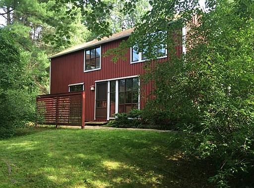 Quite possibly Amherst first condos! West coast influenced, quiet, rustic with a spacious community layout. This is a coveted free standing unit located in the back of the complex abutting forest land, with its own garage. Private yard and patio area. Not a converted apt complex, but a dedicated creation from the beginning. This just might be the bargain of the summer!