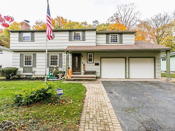 Stretch Out & Relax In This Spacious West Irondequoit 4 Bedroom, 2 1/2 Bath Colonial Offering More Room & More Rooms! Big, Bright & Airy Living Room with Gorgeous Hardwood Floors and One of Two Wood Burning Fireplaces! Gracious Formal Dining Room, Generous Sized Eat In Kitchen with All Appliances Included! Terrific 1st Floor Family Room/Den/In-Home Office Space! Private En-Suite Includes a Private Full Bath & Relaxing Jetted Tub! Finished Basement Family Rec Room with a 2nd Wood Burning Fireplace! Convenient Attached 2 Car Garage. Entertaining Back Yard Patio. Energy Efficient Vinyl Thermal Pane Windows, New Roof 2014, New Central A/C 2008, & More! You're Going To LOVE Calling This House "HOME!". Showings begin Friday Oct 30th at 9:00am. Offers To Be Presented Sunday Nov 1st 6:00pm.