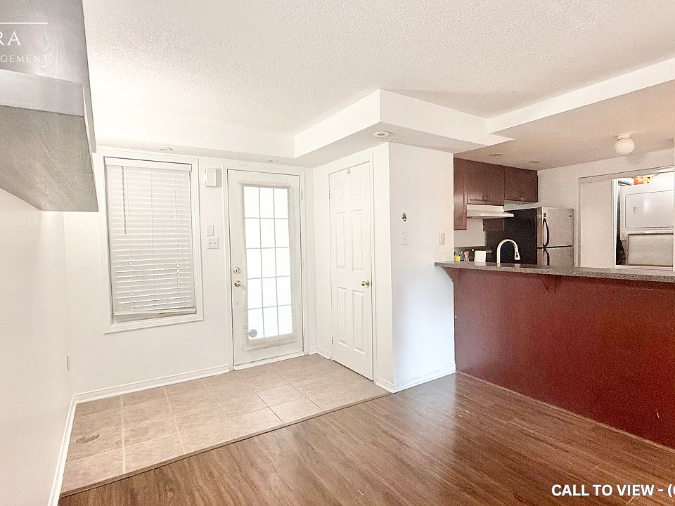 MODERN 2-BEDROOM STACKED TOWNHOUSE IN A FRIENDLY NEIGHBORHOOD This modern stacked townhouse offers upgraded finishes and abundant natural light. Ideal for small families or professionals, the townhouse features spacious bedrooms, perfect for comfortable, modern living. KEY PROPERTY DETAILS: - Type: Stacked Townhouse - Bedrooms: 2 - Bathrooms: 1 - Size: 700 SQF - Parking: 1 spot included - Availability: Immediately - Utilities: Water and Hot Water Tank Included UNIT AMENITIES: - Condition: Maintained in good condition, this townhome delivers practical comfort and solid value. - Kitchen: Finished with stainless steel appliances and Formica countertops, designed for both functionality and visual appeal. - Dishwasher: Ensures efficient kitchen cleanup, adding convenience and practicality. - Laundry: In-unit washer and dryer, no need to share or leave the unit for laundry. - Bathrooms: The bathrooms feature modern fixtures, blending comfort with contemporary style. - Thermostat: Personal climate control, tailored heating and cooling for year-round comfort. - Storage: Regular closets ensure ample storage space, keeping your living area neat and organized. - Flooring: Laminate throughout, low-maintenance, clean look that complements modern interiors. - Ceiling Height: 7.5-feet enhances openness and airiness throughout the unit, amplifies natural light and comfort. - Furnishing: Delivered unfurnished, ready for your personal touch and decor. - Layout: Open-concept design connects kitchen, dining, and living areas, supports modern living and entertaining. - Natural Light: Large windows flood the space with daylight, creating a bright and uplifting atmosphere. BUILDING AMENITIES: - View: Enjoy breathtaking city views, offering a perfect blend of urban scenery. NEIGHBORHOOD: Pinery Trail is located in Scarborough's Malvern neighborhood, a diverse and family-friendly area known for its affordable housing and strong community vibe. Residents enjoy close proximity to schools like Lester B. Pearson Collegiate, shopping at Malvern Town Centre, and convenient transit access via McLevin Avenue and Tapscott Road. With nearby parks and a mix of townhomes and condos, it's a practical and welcoming place for families, students, and professionals alike. Call or text us today to schedule your private showing. Tenants will be responsible for Hydro and Gas. This modern townhouse comes with 1 parking space.