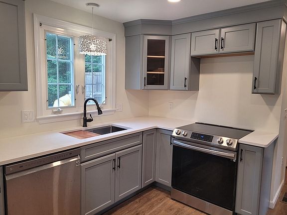 Beautiful newly renovated 3 bed 2 1/2 bath single family home in secluded neighborhood of Attleboro. New shingled roof, newly renovated kitchen, including all appliances and cabinets, living room, and dining room. An extra room was permitted and built in approximately 2020 in part of the garage space that could be used as an office or playroom. Recently updated 200 amp electrical service. Large above-ground pool with wrap around deck (pool needs liner and TLC). Huge play area/structure in backyard. Very close to shopping areas and restaurants. Central AC. Also, 16' by 24' shed for storage of tools and yard equipment.