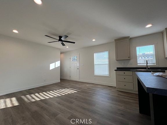 Discover Paso Robles living in this never occupied 2024 home, offering modern design and comfort in a sleek, efficient layout. This 2 bedroom, 2 bath residence features stainless steel appliances, including a refrigerator, and a spacious kitchen; complete with an island that overlooks the living room - perfect for entertaining or relaxing. The thoughtfully designed floor plan offers privacy with a spacious primary suite featuring an en suite, separate from the guest bedroom and bath. Both bedrooms and the living room feature newly installed ceiling fans including remotes. A generously sized utility room off the kitchen provides laundry space, additional storage, or room for a potential pantry. Outside, enjoy a newly poured concrete driveway with permit in hand for a carport. The fenced backyard includes a back gate which provides direct access to the community park, enhancing your outdoor living experience. Located in an all-ages park within the sought-after Templeton School District, this home has space rent that includes water, making it an exceptional find!